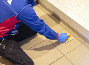 玄関床に付いた汚れを除去します。
